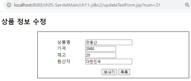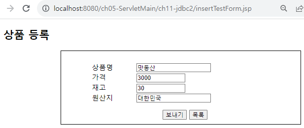 보내기 버튼 클릭하면 insertTest.jsp 페이로 간다.
