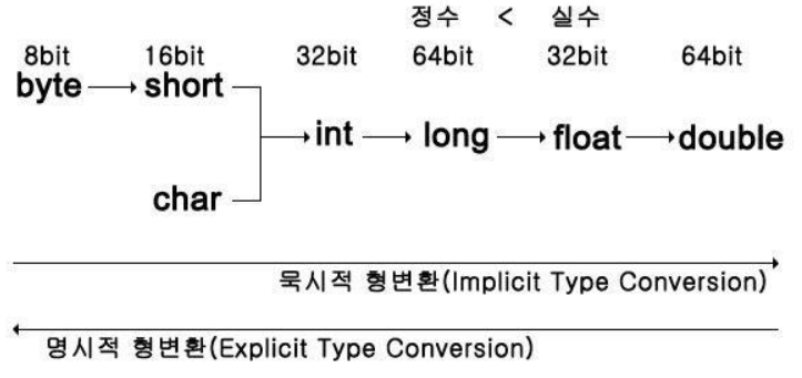 명시적 형변환 일때, (byte) (short) 를 "캐스트 연산자" 라고 부른다.