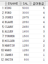 SELECT ename,sal,GET_SAL_GRADE(empno) 급여등급 FROM emp ORDER BY sal DESC;