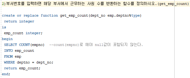 SELECT deptno,dname,GET_EMP_COUNT(deptno) 사원수 FROM dept;