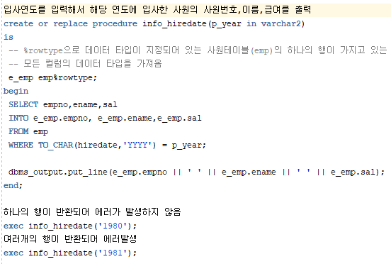 -- %rowtype으로 데이터 타입이 지정되어 있는 사원테이블(emp)의 하나의 행이 가지고 있는
