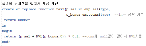 SELECT empno,ename,sal,comm,TAX2(sal,comm) AS tax FROM emp;