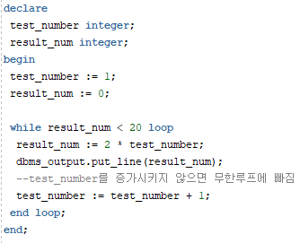 -- loop 블럭을 빠ㅣ져나오면 아래 코드를 실행함
