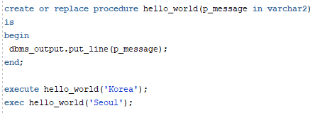 exec hello_world('Seoul');