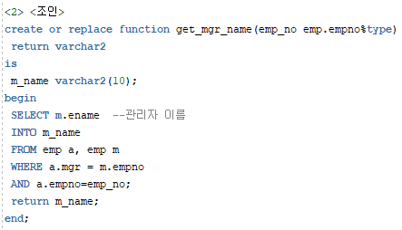 SELECT empno,ename,GET_MGR_NAME(empno) "관리자 이름" FROM emp;